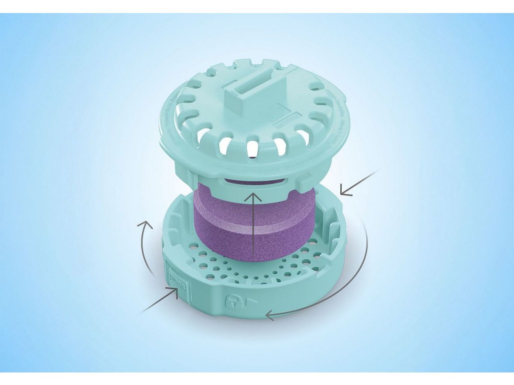 ● Vyjímatelná bezpečnostní komora pro koupelové tablety s mechanismem otáčení/zatlačení