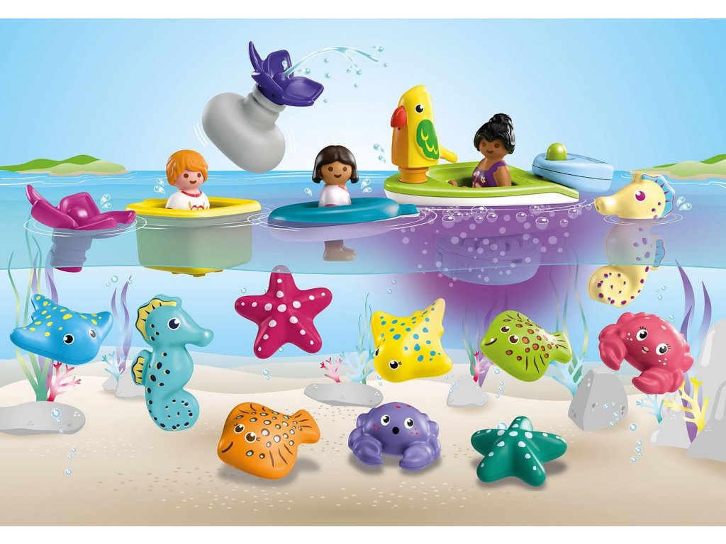 Obsahuje: 1 žena, 1 dívka, 1 chlapec, 2 mořští koníci, 2 krabi, 2 rejnoci, 2 hvězdice, 2 platýsi, 3 koupelové tablety Tinti, 1 loďka s komorou na koupelovou tabletu, 1 plavecký kruh, 1 naběračka, 2 květy stříkačky, 1 papoušek stříkačka, 1 měch stříkačky, 1 zásuvný prvek