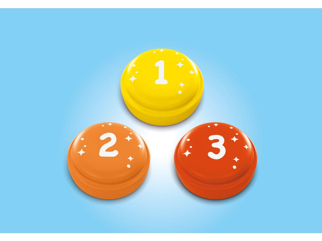 ● Stohovatelné barevné kameny s čísly, které slouží jako stojánek pro raketu
