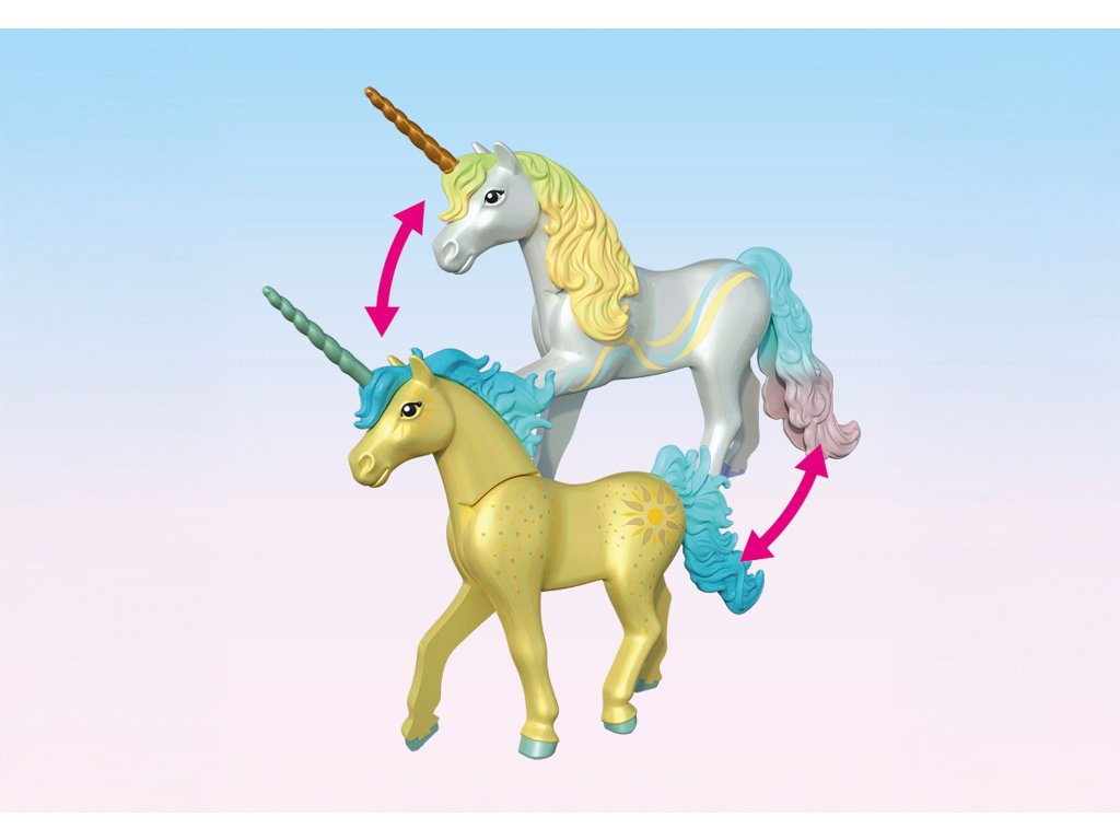 Jednorožci je možné změnit hřívu, roh a ocas za jinou barvu, kterou děti naleznou v dalších setech z kolekce PLAYMOBIL® Jednorožci.