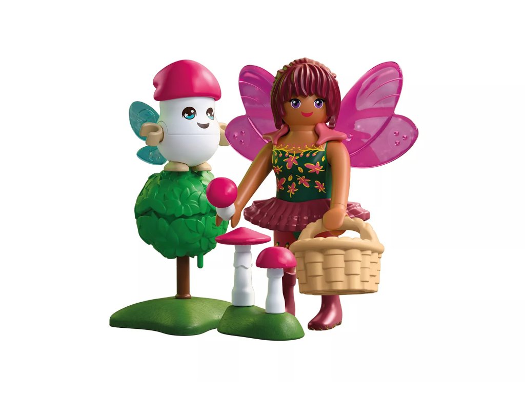 Obsahuje: 1 víla, 1 malý pomocník (Joyling), 1 vílí křídla, 1 košík, 1 malý stromeček, 3 houby