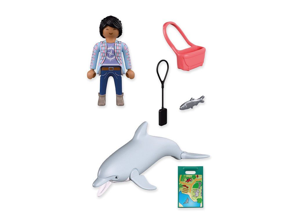 Návštěvnice s delfínem je perfektním doplňkem k dalším sadám z herního světa PLAYMOBIL® Zoo.